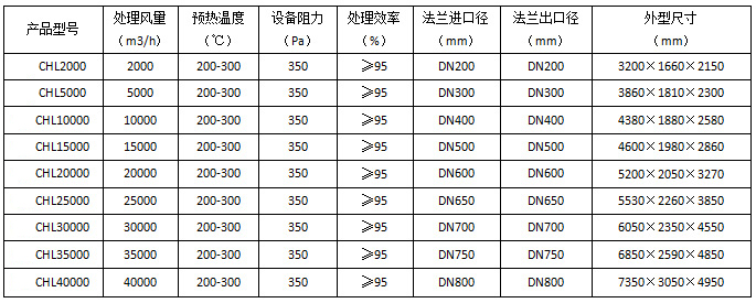 五、RCO催化燃燒處理設(shè)備型號及參數(shù)
