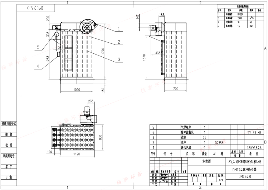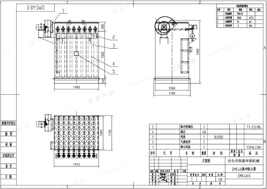 | 設(shè)備型號 | 處理風(fēng)量(m³/h ) | 濾袋數(shù)量(只) | 過濾面積(㎡) | 電機功率(Kw) |